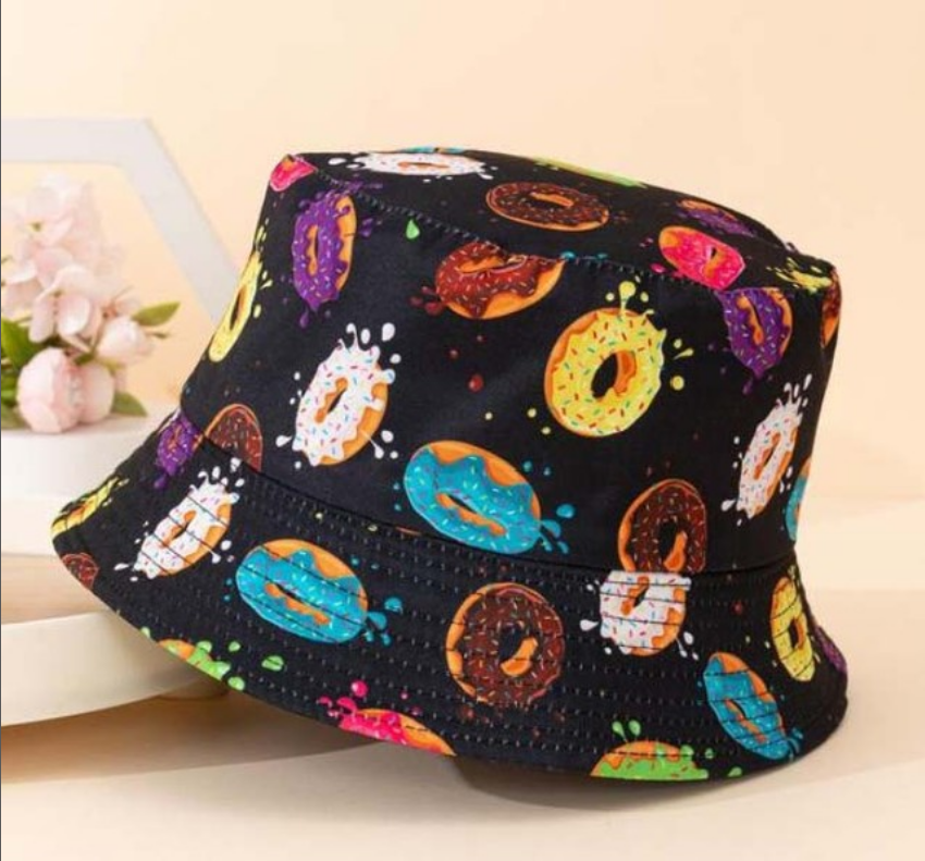 Apportez une touche de gourmandise et de fun à votre look avec notre bob noir orné de donuts multicolores. Parfait pour ceux qui aiment les designs ludiques et uniques, ce bob ajoutera une touche sucrée et stylée à votre tenue.