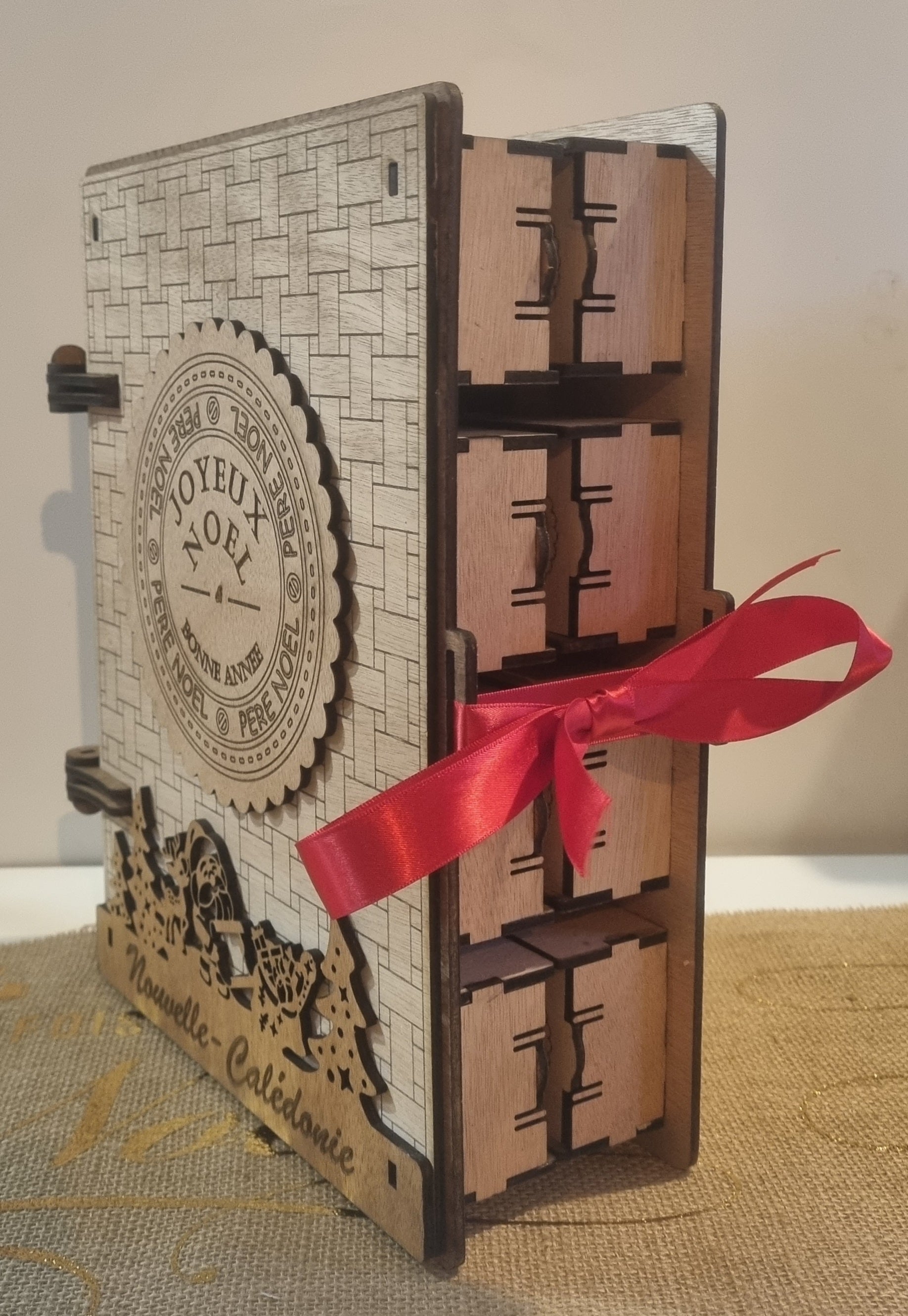 Élevez l'attente des fêtes avec notre calendrier de l'Avent en bois en forme de livre, une pièce décorative qui allie l'élégance d'un livre ancien avec la magie de Noël. Ce calendrier est parfait pour ceux qui aiment ajouter une touche de tradition et de raffinement à leur saison des fêtes.