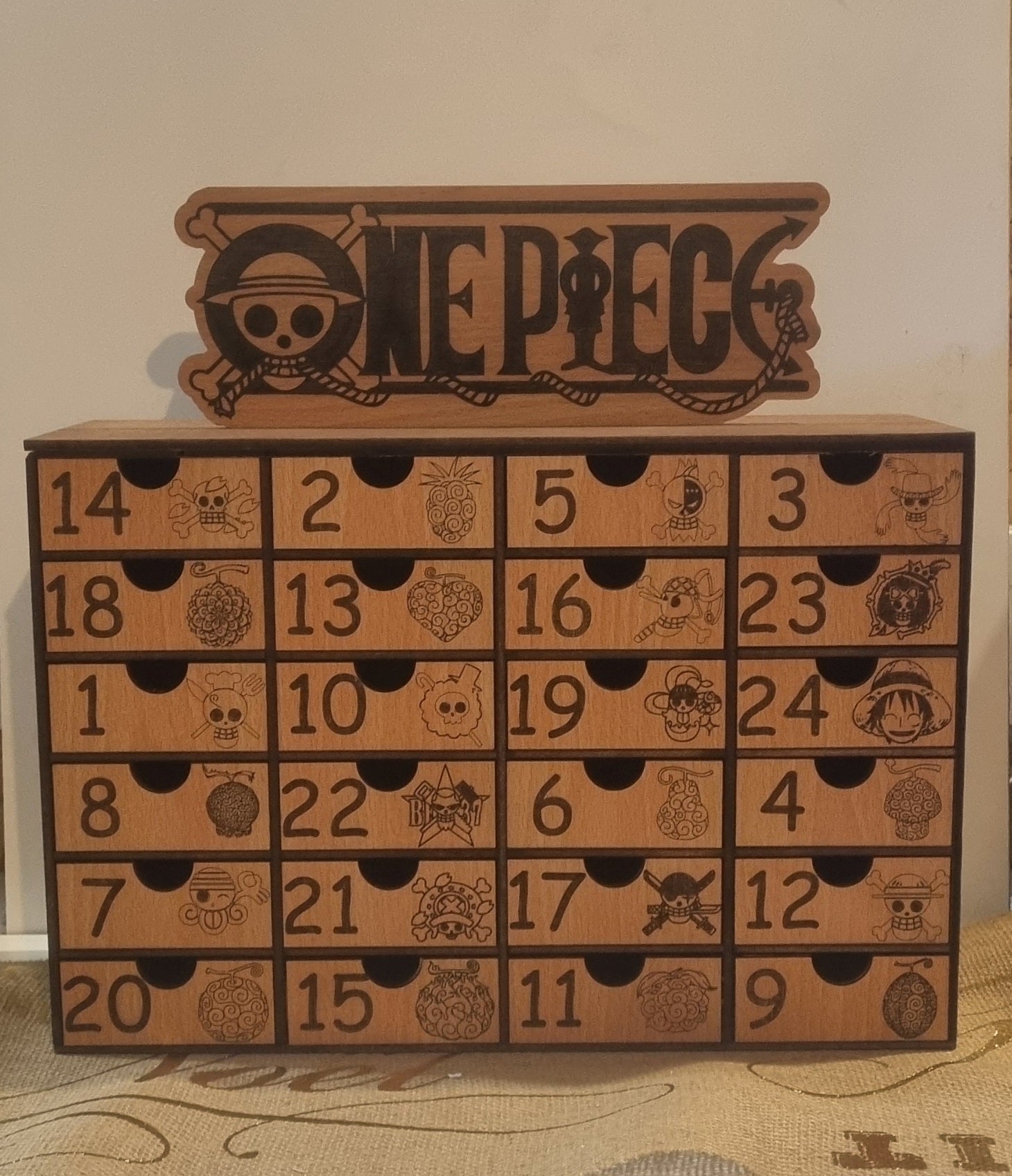 Faites monter l'excitation de Noël avec notre calendrier de l'Avent One Piece en bois, une façon unique de célébrer les fêtes pour les fans de l'emblématique série de manga et d'anime. Ce calendrier combine le charme artisanal du bois avec l'univers fascinant de One Piece, créant une expérience festive inoubliable.