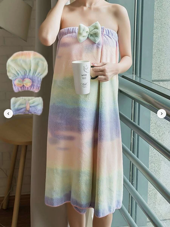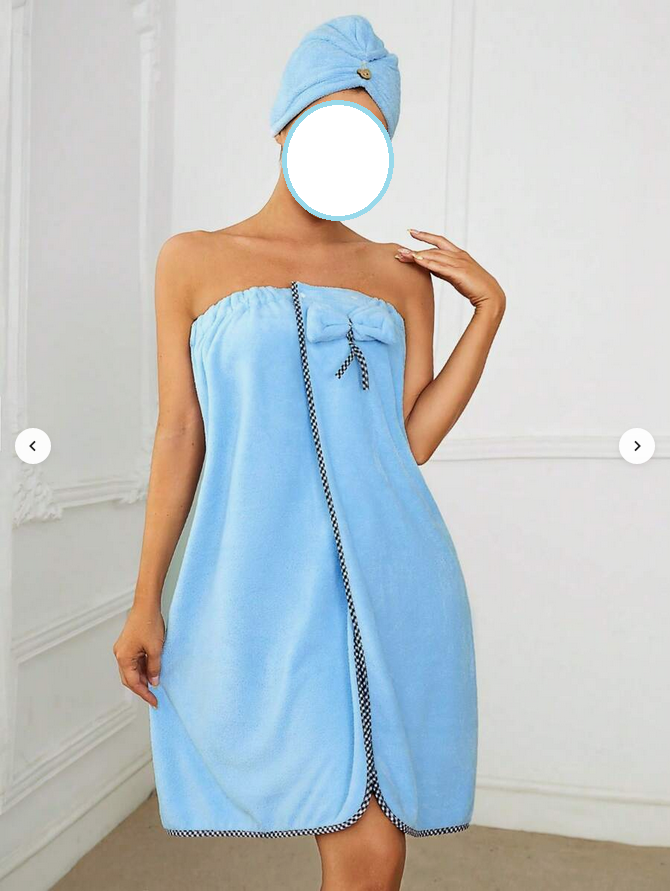 - Une "robe" (75x150 cm) : douce et absorbante, parfaite pour s'envelopper après une douche ou un bain.