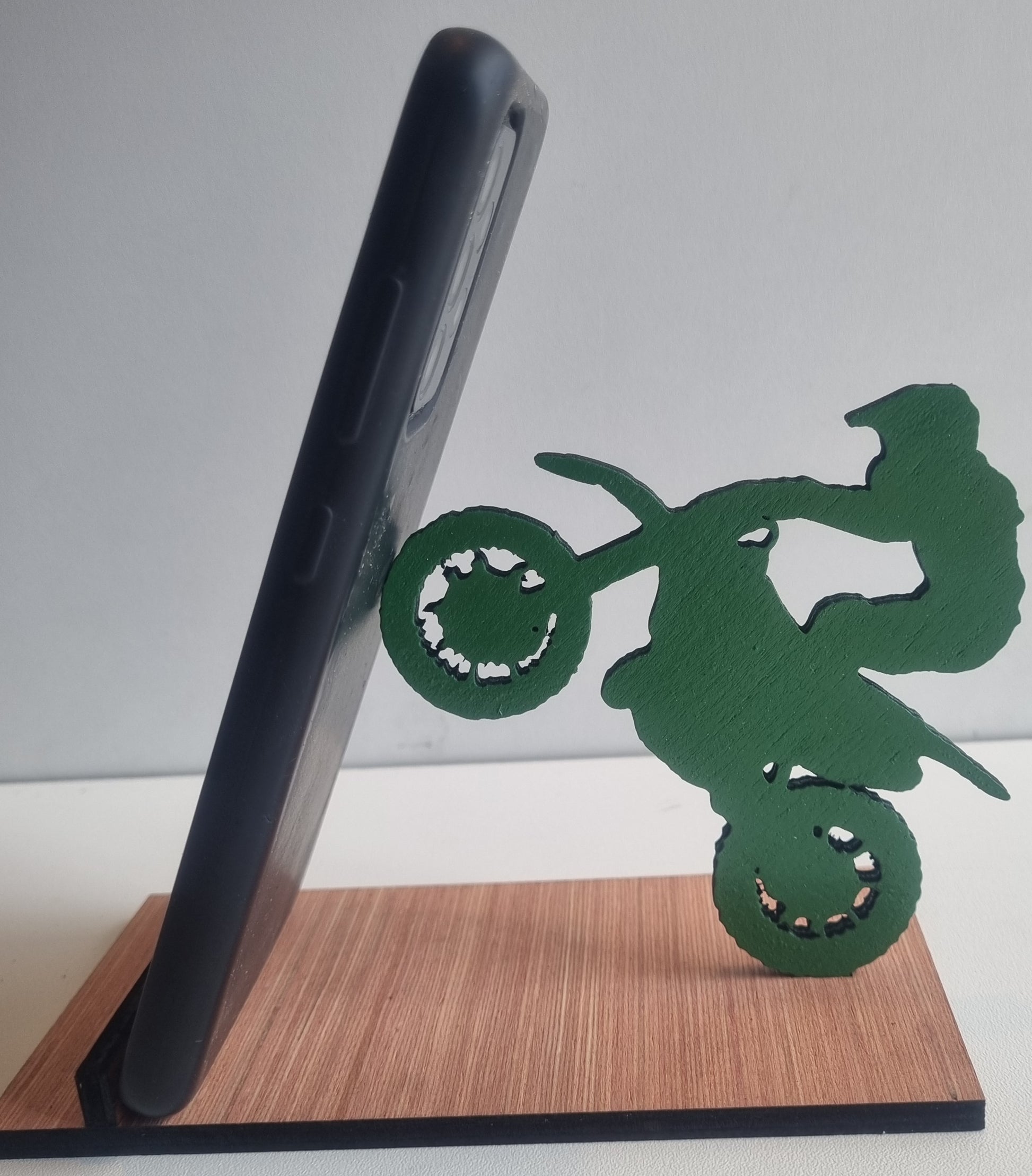 Éveillez votre passion pour la moto avec le Support de Smartphone en Bois "Moto en Wheeling". Ce support au design audacieux et dynamique est parfait pour les amateurs de sensations fortes et d’aventure, alliant fonctionnalité et esthétique.
