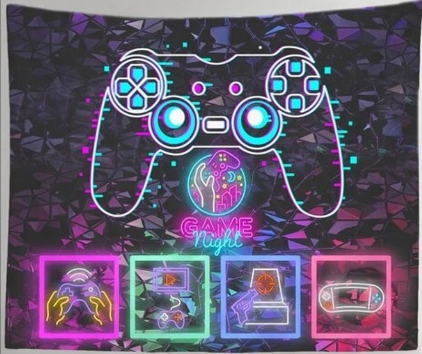 Préparez-vous pour des soirées de jeu inoubliables avec notre tapisserie "Game Night". Parfaite pour les passionnés de jeux vidéo, cette tapisserie apportera une touche dynamique et geek à votre espace.