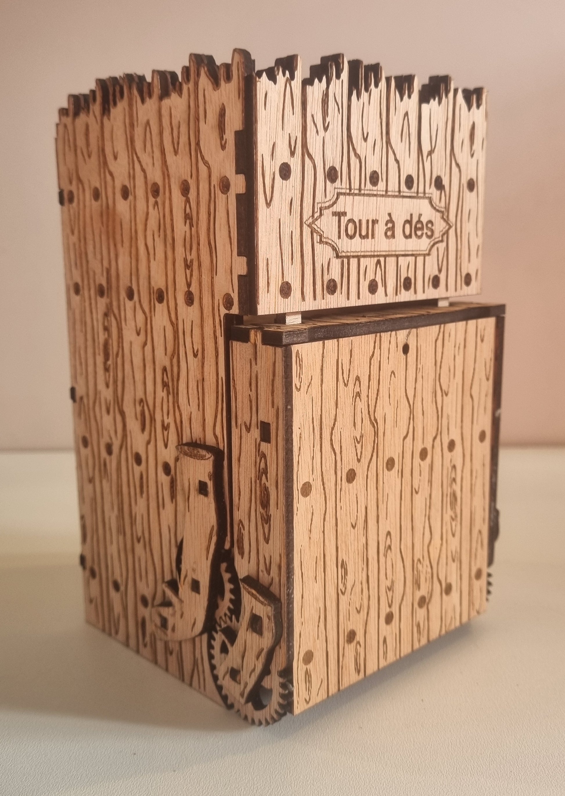 Fonctionnalité : Equipée d’un mécanisme incliné, la tour assure un lancer de dés aléatoire et équitable. Les dés tombent dans un compartiment inférieur où ils peuvent être facilement récupérés, minimisant le désordre et améliorant l’expérience de jeu.